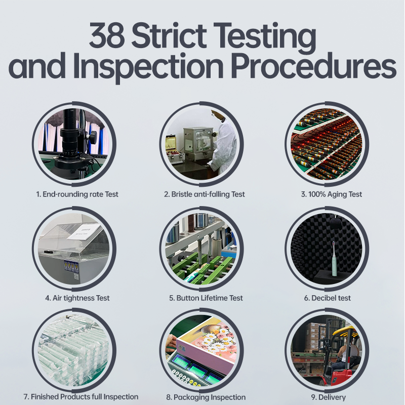 At Aigdoo, quality isn’t checked—it’s engineered into every stage. As an OEM/ODM electric toothbrush manufacturer, we enforce 38 strict testing procedures to ensure each brush delivers safety, durability, and clinical-grade cleaning. Here’s how we protect your brand reputation: