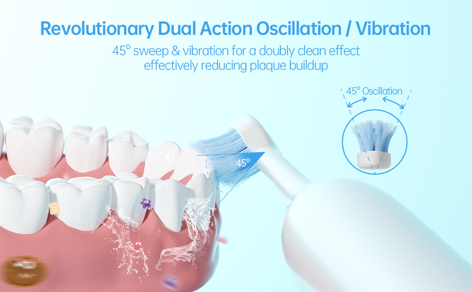 Revolutionary Dual Action Brushing Experience: Oscillation (40-60°) & vibration(0-20°)